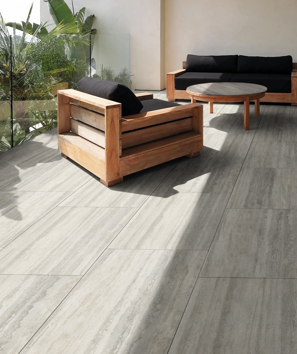 Γρανίτης πρώτης ποιότητας, με ματ υφή και σε ύφος μαρμάρου διάστασης 60x120cm με υψηλό δείκτη αντιολίσθησης R10.