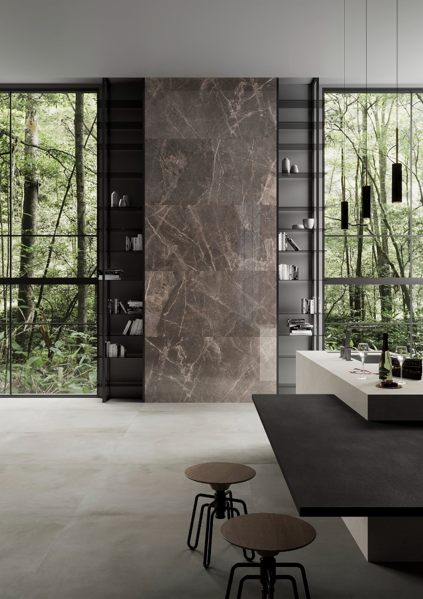 Ακόμα μια επιλογή σε πλακάκι με ύφος μαρμάρου καφέ απόχρωσης, κατάλληλο για κάθε εσωτερικό χώρο.