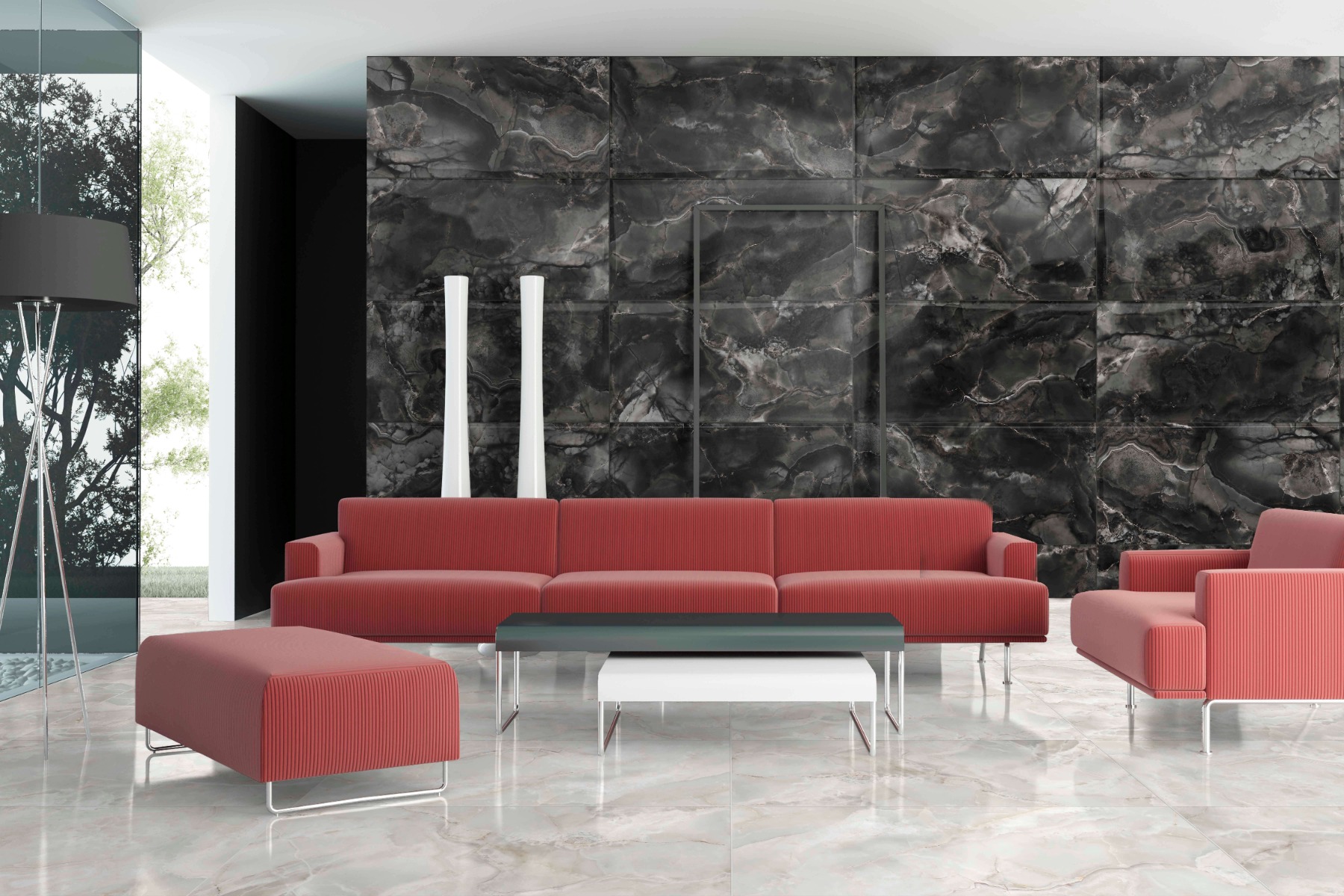 Πλακάκι γρανίτης Riflessi Nero 60x120cm με ημι-γυαλιστερή υφή.