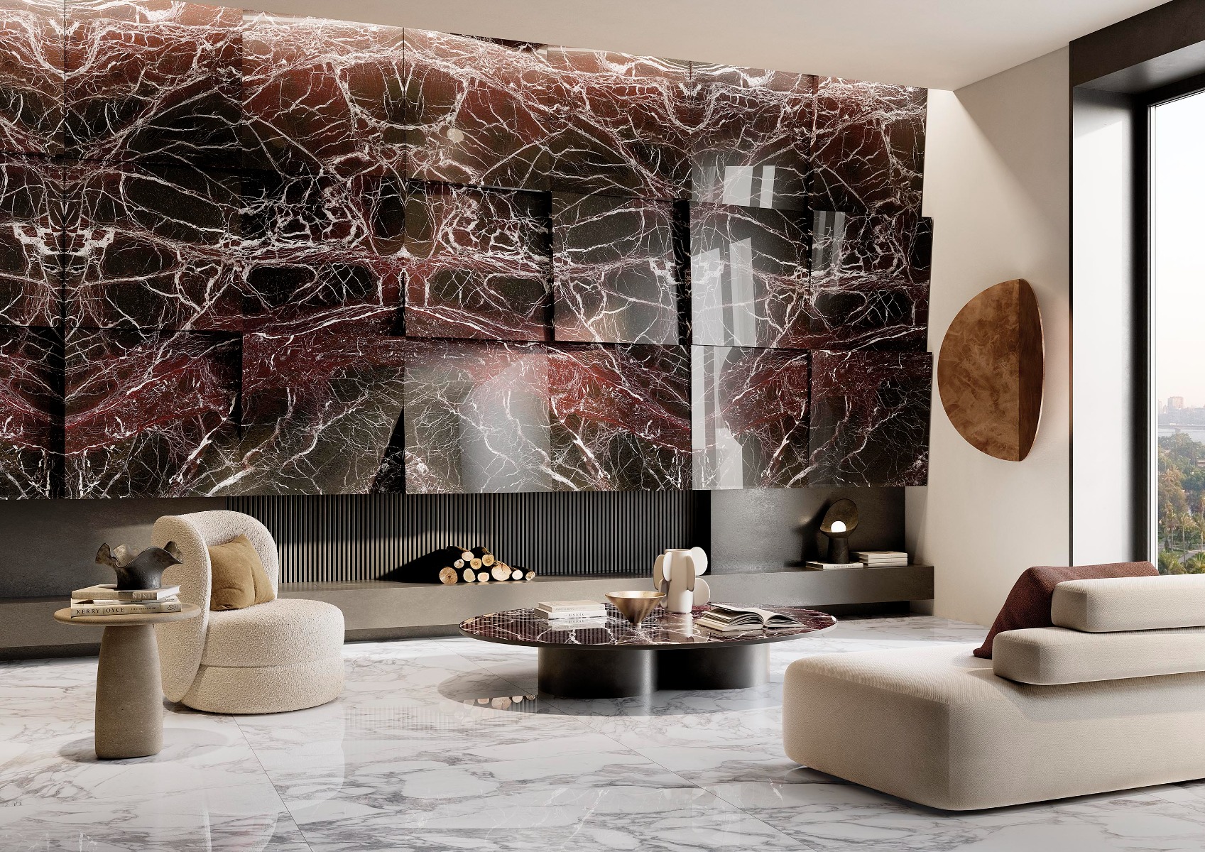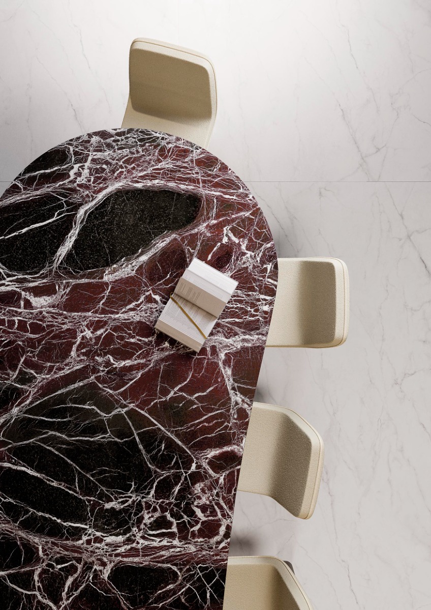 Το κόκκινο χρώμα της σειράς προσθέτει στο εφέ μαρμάρου μια ξεχωριστή αίσθηση, ιδανική για interior projects που θα ξεχωρίσουν. Μια ιδιαίτερη απόχρωση κόκκινου, εμπνευσμένη από τον τόπο προέλευσής της σειράς, τις Άλπεις, αποκομμένη όμως από τις φυσικές ατέλειες της πέτρας. Μια επιλογή που εξισορροπεί το κλασικό φυσικό στοιχείο με το σύγχρονο design και το έντονο χρώμα.