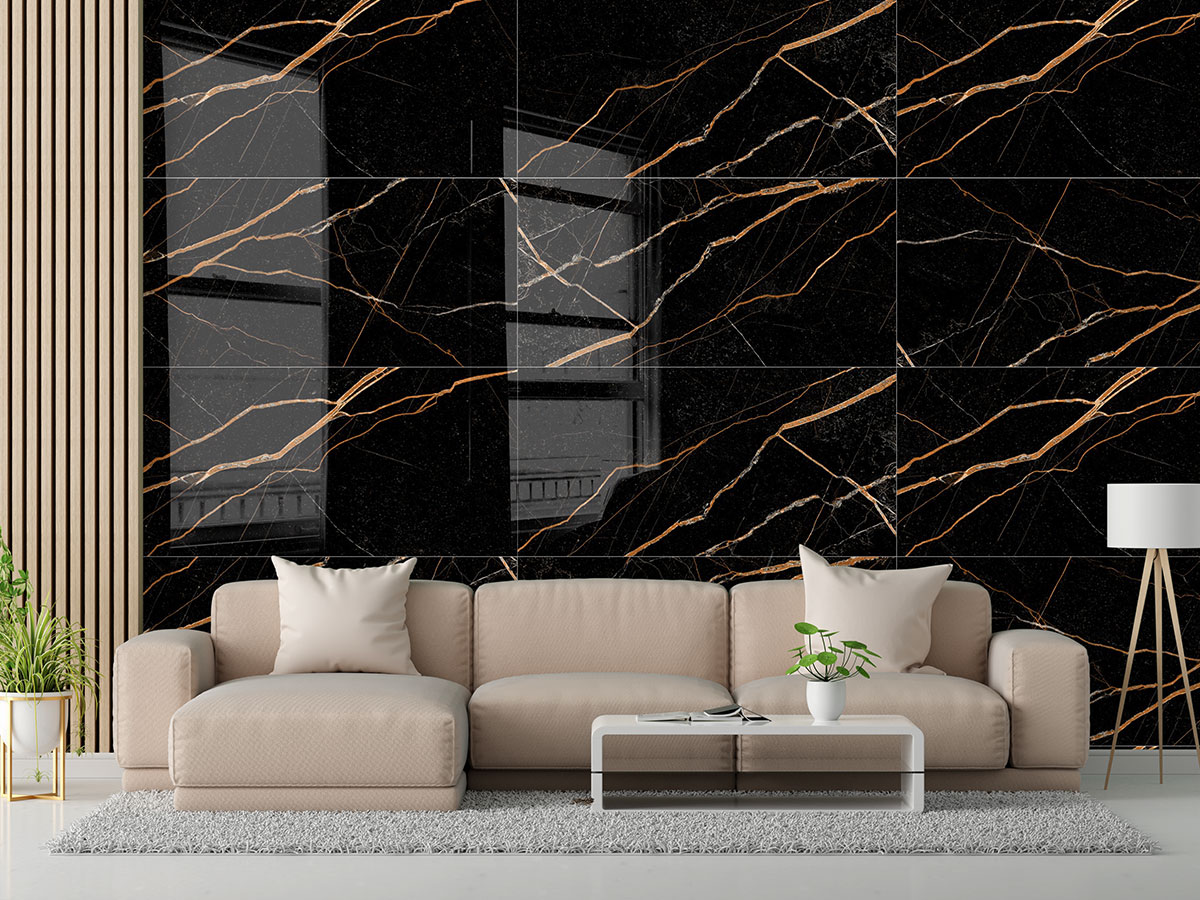 Πλακάκι δαπέδου Royal Vendom Black 60x120cm Γυαλισμένο Rectified γρανίτης πρώτης ποιότητας.