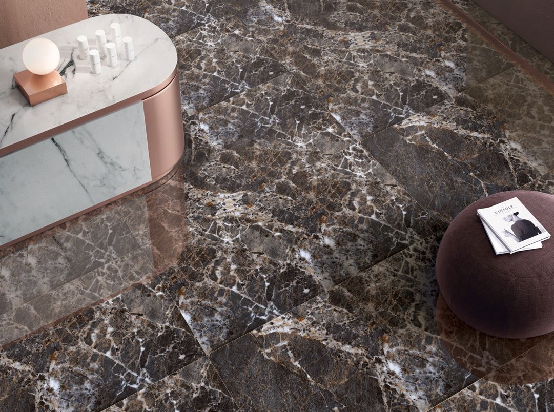 Πλακάκι δαπέδου Volutas Choco 60x120cm Γυαλισμένο Rectified, γρανίτης πρώτης ποιότητας.
