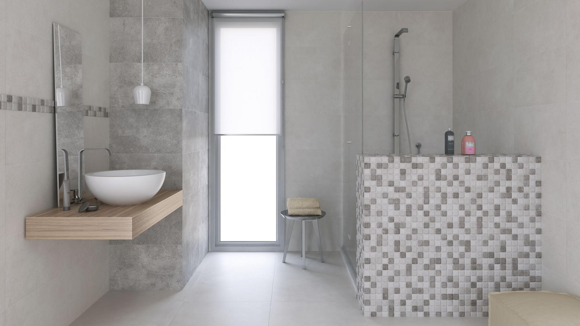Κεραμικό πλακάκι πρώτης ποιότητας, σε σατινέ/λαπάτη υφή και ύφος τσιμέντου σε διάσταση 33,3x55cm.