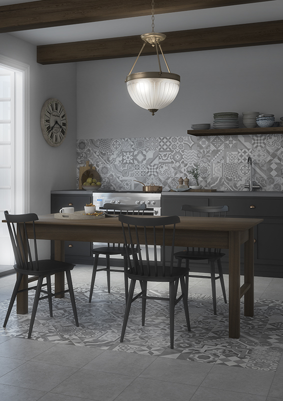 Ο συνδυασμός των γκρι αποχρώσεων του Cementina Grigio σε στυλ ρετρό μωσαϊκό με ύφος τσιμέντου, προσφέρει αρμονία τόσο δάπεδο όσο και στο σύνολο του χώρου.