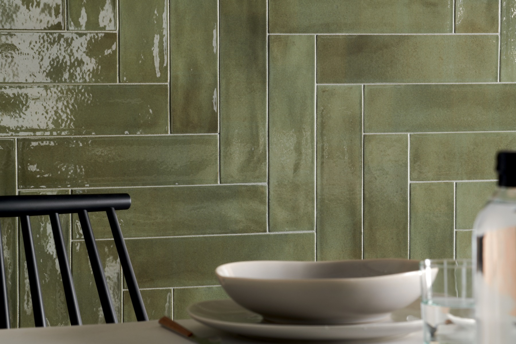 Γρανίτης πρώτης ποιότητας της σειράς Multiforme 1741 τύπου τουβλάκι 7,5x30cm, σε χρώμα Giada πράσινης απόχρωσης και εφέ τσιμέντου.