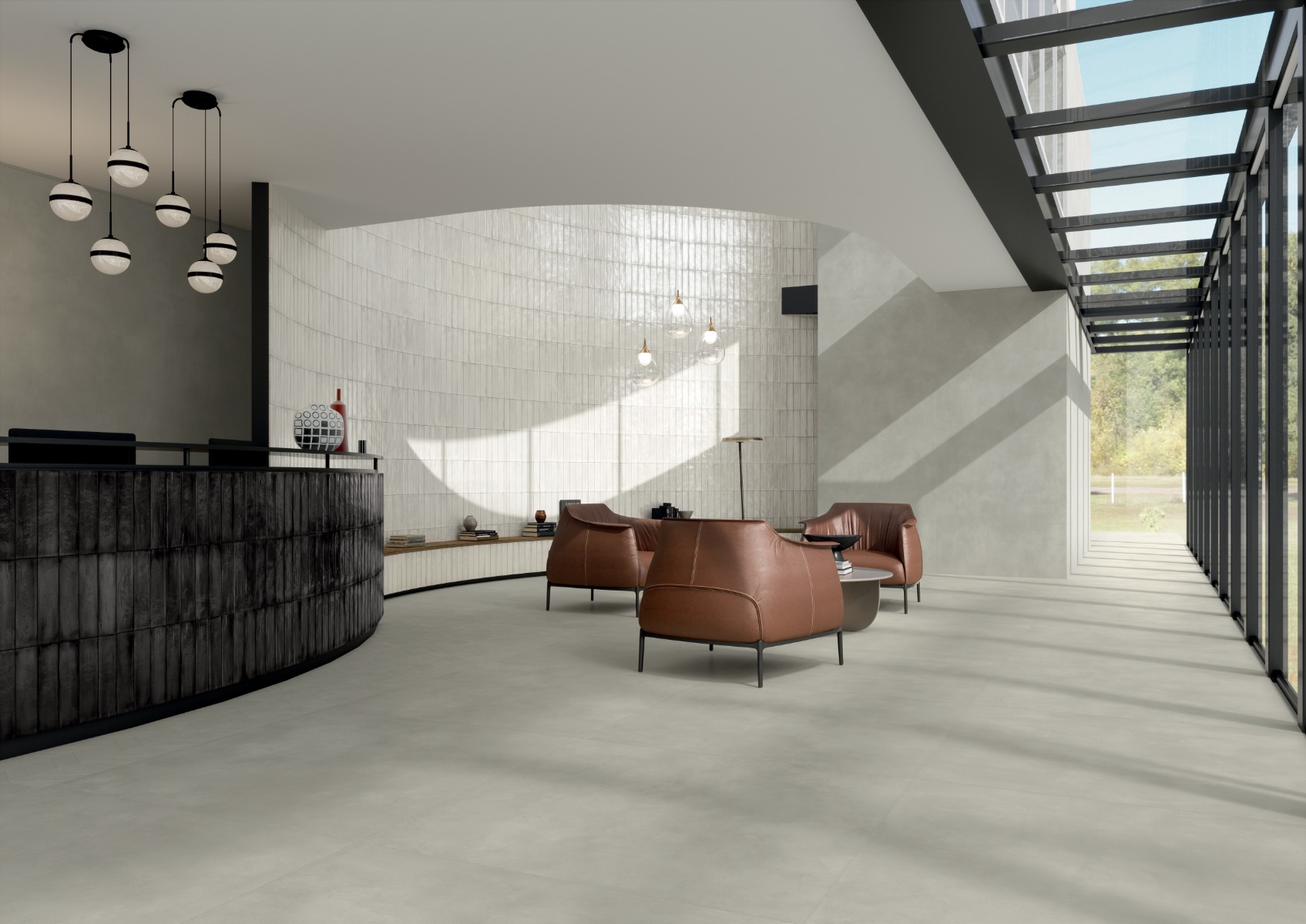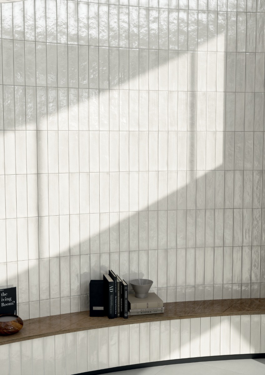 Ενισχύει την ικανότητα των επιφανειών να “ντύνονται”, χάρη στις λύσεις που κυμαίνονται από μικρά τούβλα 7,5x30cm έως μεγάλα μεγέθη, όπως η εξαιρετικά λεπτή πλάκα 120x278cm, από γεωμετρικά σχέδια έως λουλούδια και ευρεία σειρά ψηφιδωτών για εφέ «ταπετσαρίας».