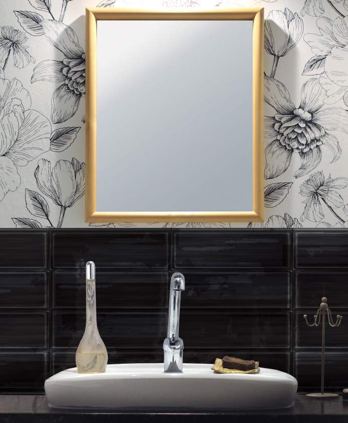 Πλακάκι τοίχου μονόχρωμο μαύρο εμπορικής διαλογής, με γυαλιστερή υφή και διάσταση 10x30cm.