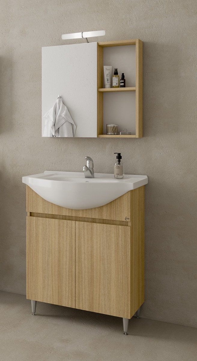 Ολοκληρωμένο σετ επίπλου μπάνιου 3 τεμαχίων της σειράς Alfa 65 σε χρώμα Slavonia Oak Drop.