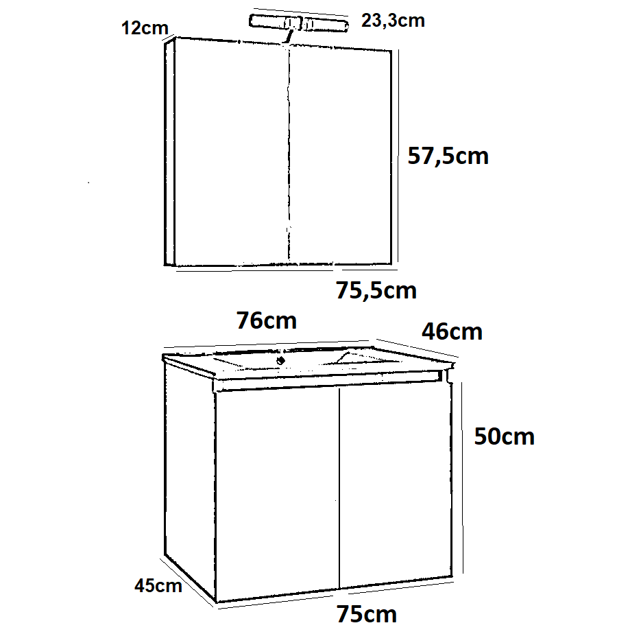 Διαστάσεις νιπτήρα: 76x46x2cm
