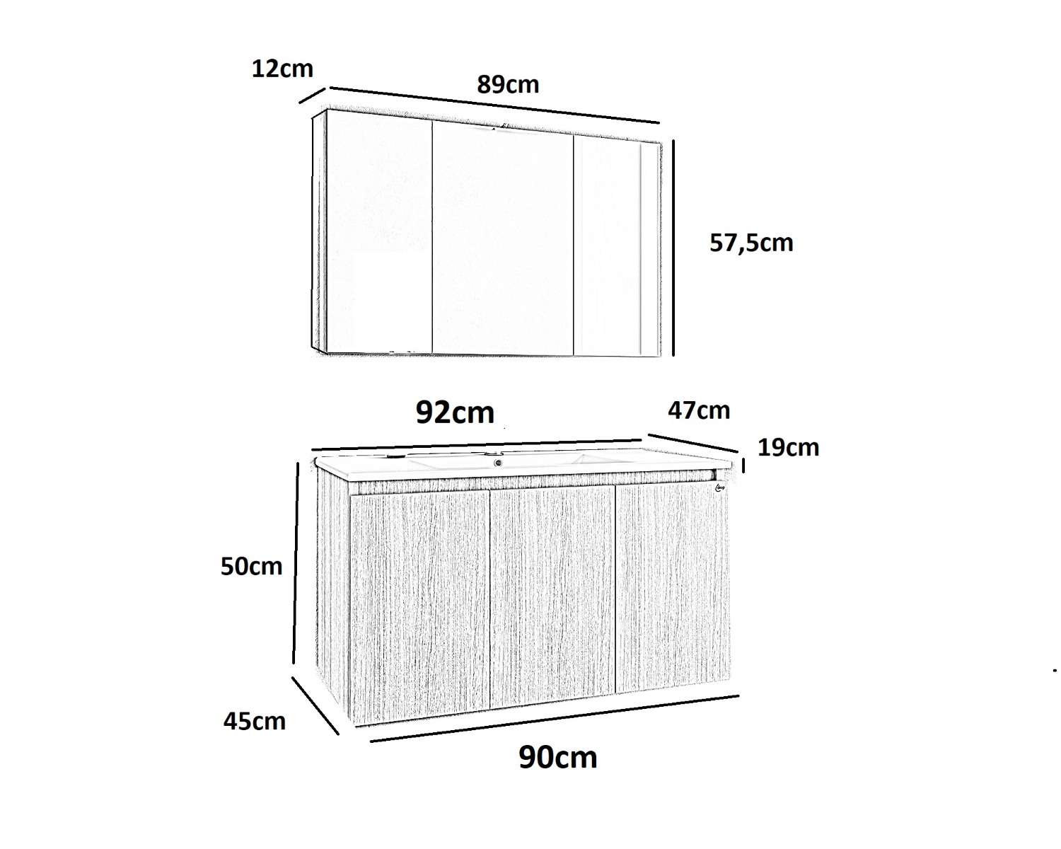Διαστάσεις νιπτήρα: 92x47x19cm