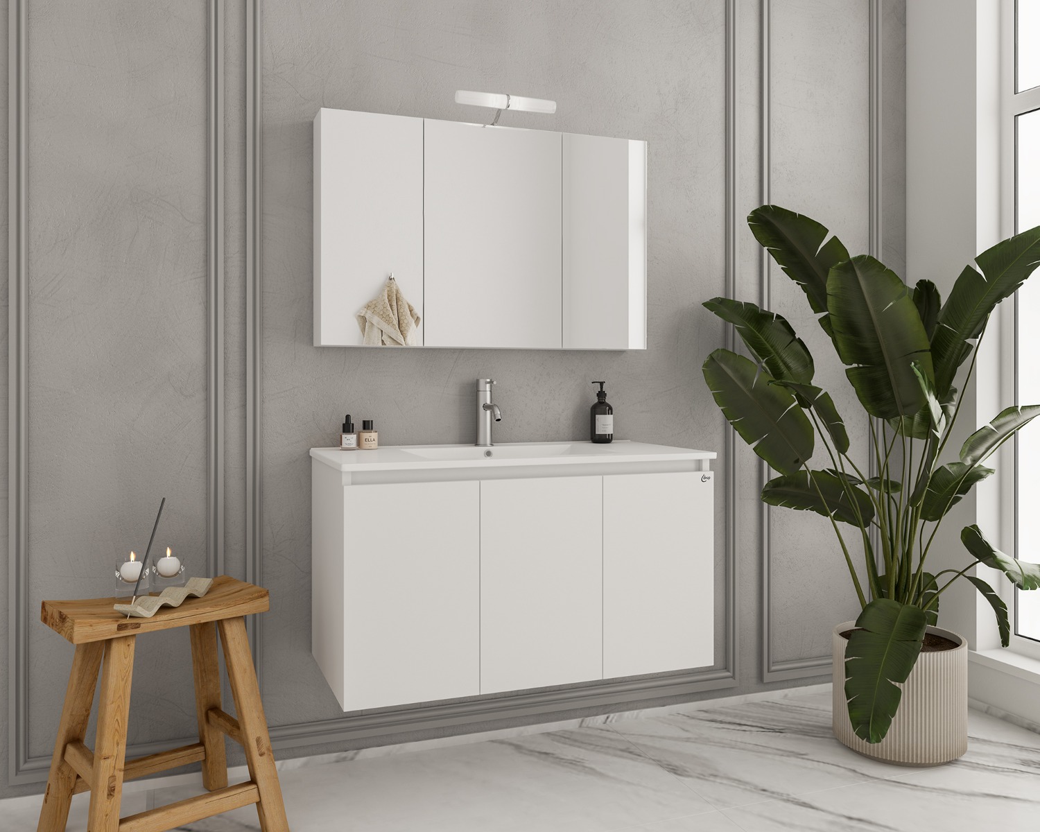 Ολοκληρωμένο σετ επίπλου μπάνιου 4 τεμαχίων της σειράς Verona 90 σε Λευκό χρώμα Drop.