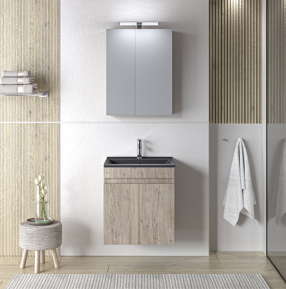 ΣΕΤ ΕΠΙΠΛΟΥ OMEGA 50cm χρ. (W.BL) ΛΕΥΚΟ GLOSS 9SOM050GLBW Πάγκο 50x44x60 • Πάγκος κρεμαστός OMEGA ΛΕΥΚΟ GLOSS 50 με τέλεια εφαρμογή σε όλες τις επιφάνειες με ή χωρίς πλακίδια. Περιλαμβάνει μεγάλο ερμάριο για την εξοικονόμηση επιπλέον αποθηκευτικού χώρου στο μπάνιο. • Καθρέφτης OMEGA ΛΕΥΚΟ GLOSS 45 . Περιλαμβάνει πρόσοψη καθρέφτη με δύο πόρτες. Διαθέτει εσωτερικό ράφι για να οργανώνετε καλύτερα την αποθήκευση χρηστικών αντικειμένων καθημερινής χρήσης για όλα τα μέλη της οικογένειάς σας.. •Νιπτήρας SLIM 50 από μαύρη πορσελάνη κορυφαίας ποιότητας και υψηλής αντοχής και αισθητικής. Διαθέτει οπή υπερχείλισης. Μελαμίνη 16mm πάχος Το Σετ Έπιπλο Μπάνιου Omega σε απόχρωση ΛΕΥΚΟ GLOSS αποτελεί ένα μοντέρνο κομμάτι για το μπάνιο σας! Έχει την υφή και την όψη του ξύλου σε αποχρώσεις του μπεζ. Με εργονομικό σχεδιασμό αλλά και λειτουργικότητα. •Πρακτικοί αποθηκευτικοί χώροι •Μηχανισμοί για απαλό και αθόρυβο κλείσιμο •Εύκολη τοποθέτηση •Ετοιμοπαράδοτα προϊόντα Δεν συμπεριλαμβάνονται το φωτιστικό και η μπαταρία. Διατίθεται έτοιμο συναρμολογημένο.