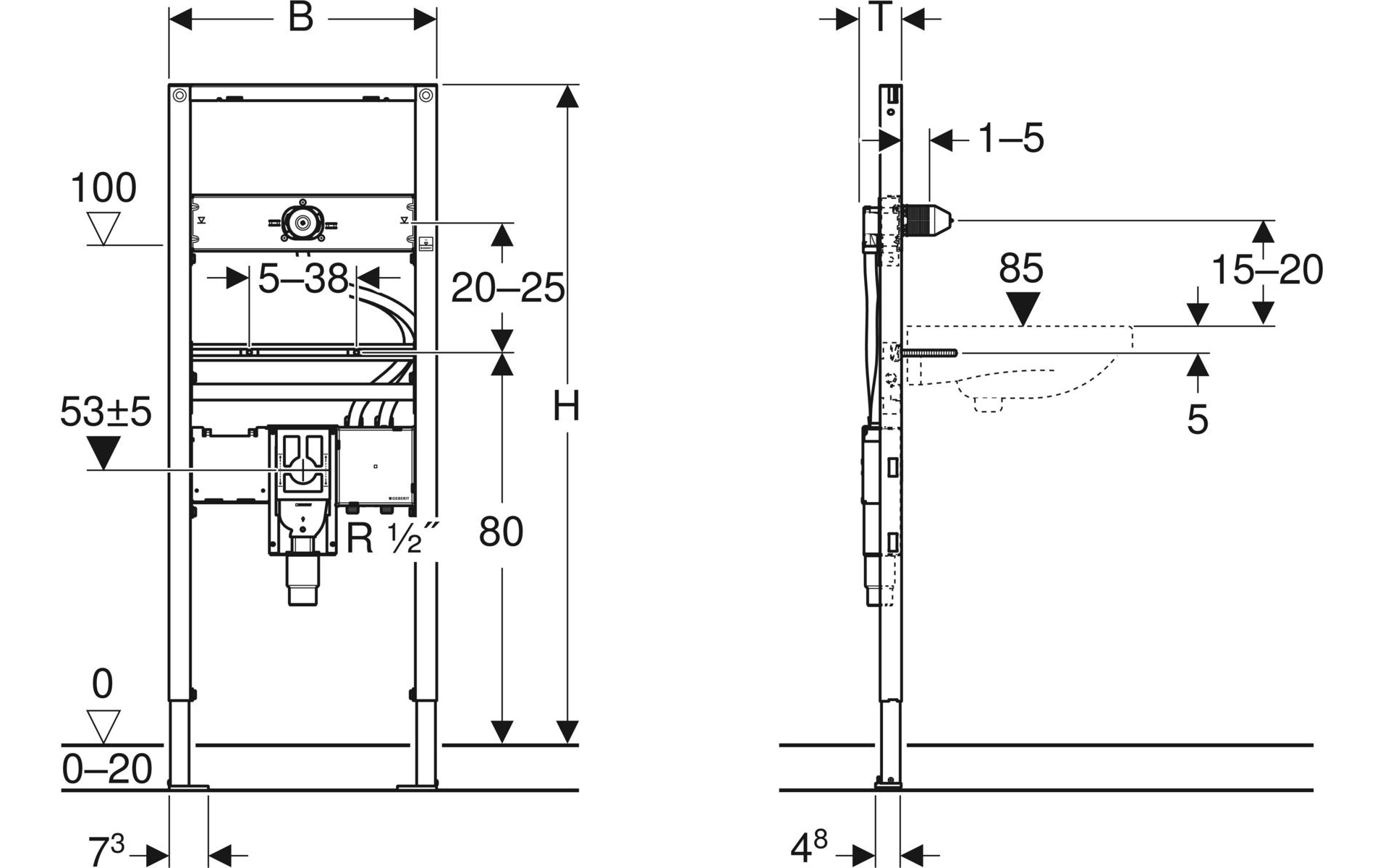 - Για βρύσες νιπτήρα Geberit, επιτοίχια, με κρυφό κουτί λειτουργίας