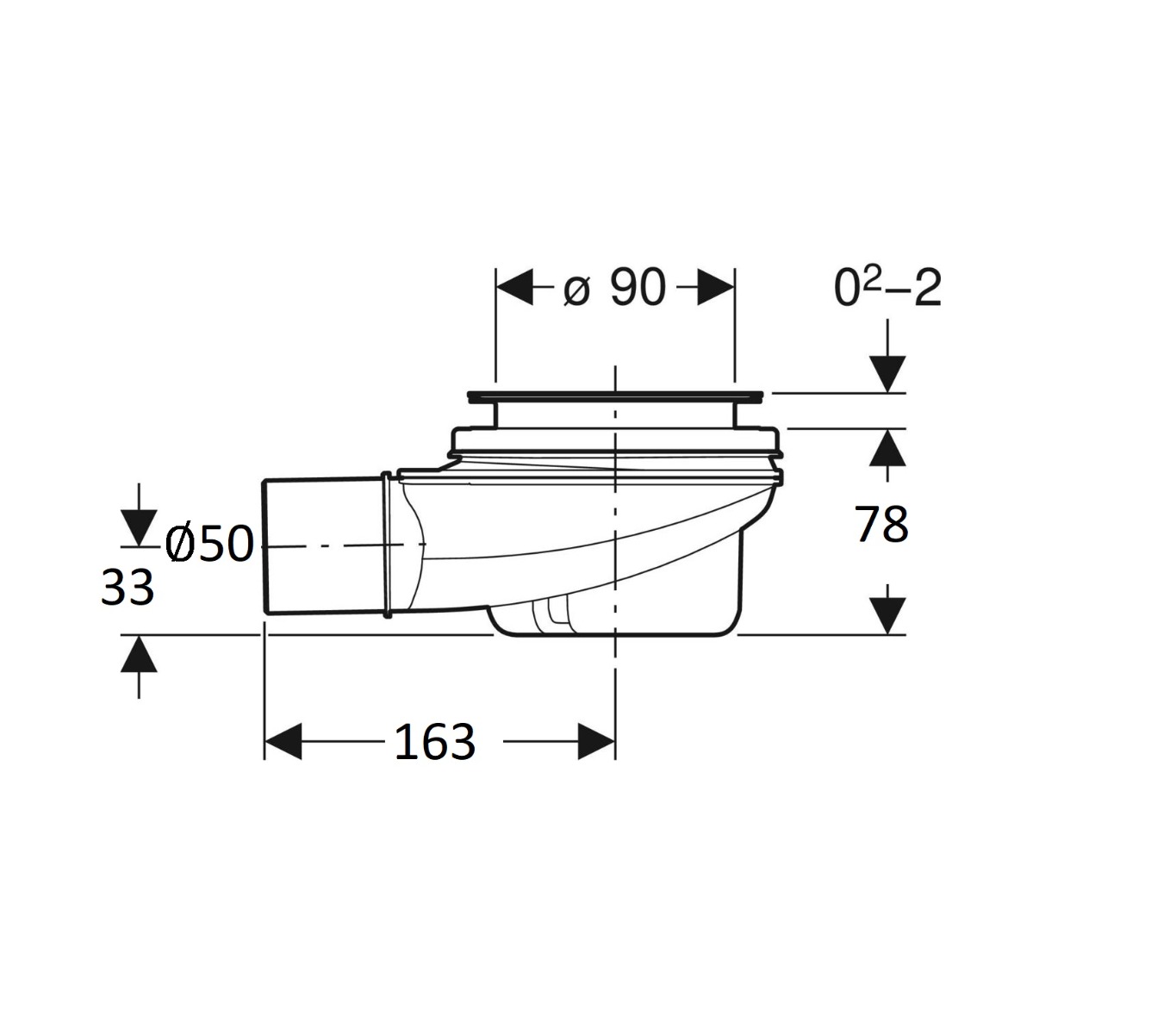 Σιφώνι ντουζιέρας πλαστικό ∅90, σφράγισμα βάθους νερού 50mm, έξοδος από PE 150.550.00.1 Geberit.