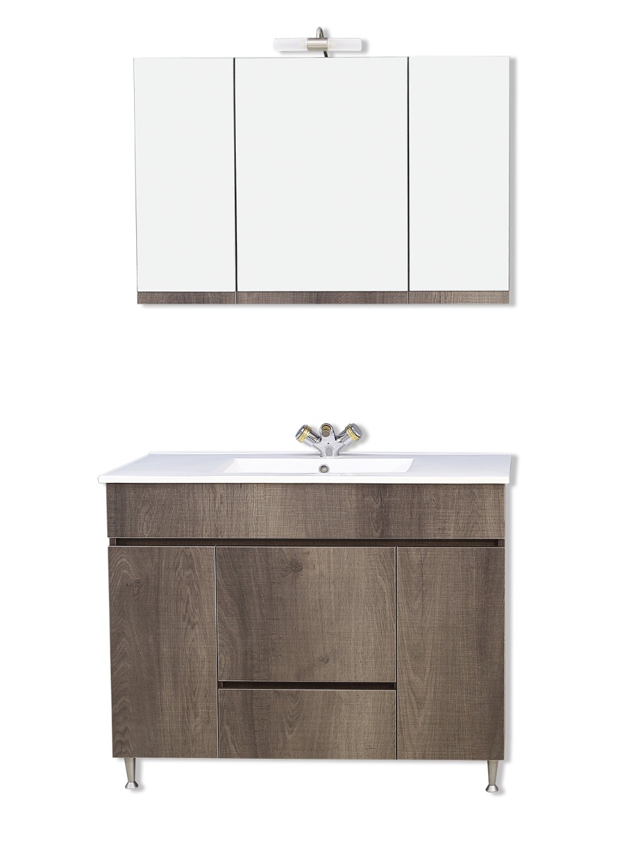 Βάση επίπλου μπάνιου επιδαπέδια 100cm, της συλλογής ΣΕΛΒΑ, με τρία ντουλάπια σε καφέ απόχρωση εφέ φυσικού ξύλου (κωδ.331).