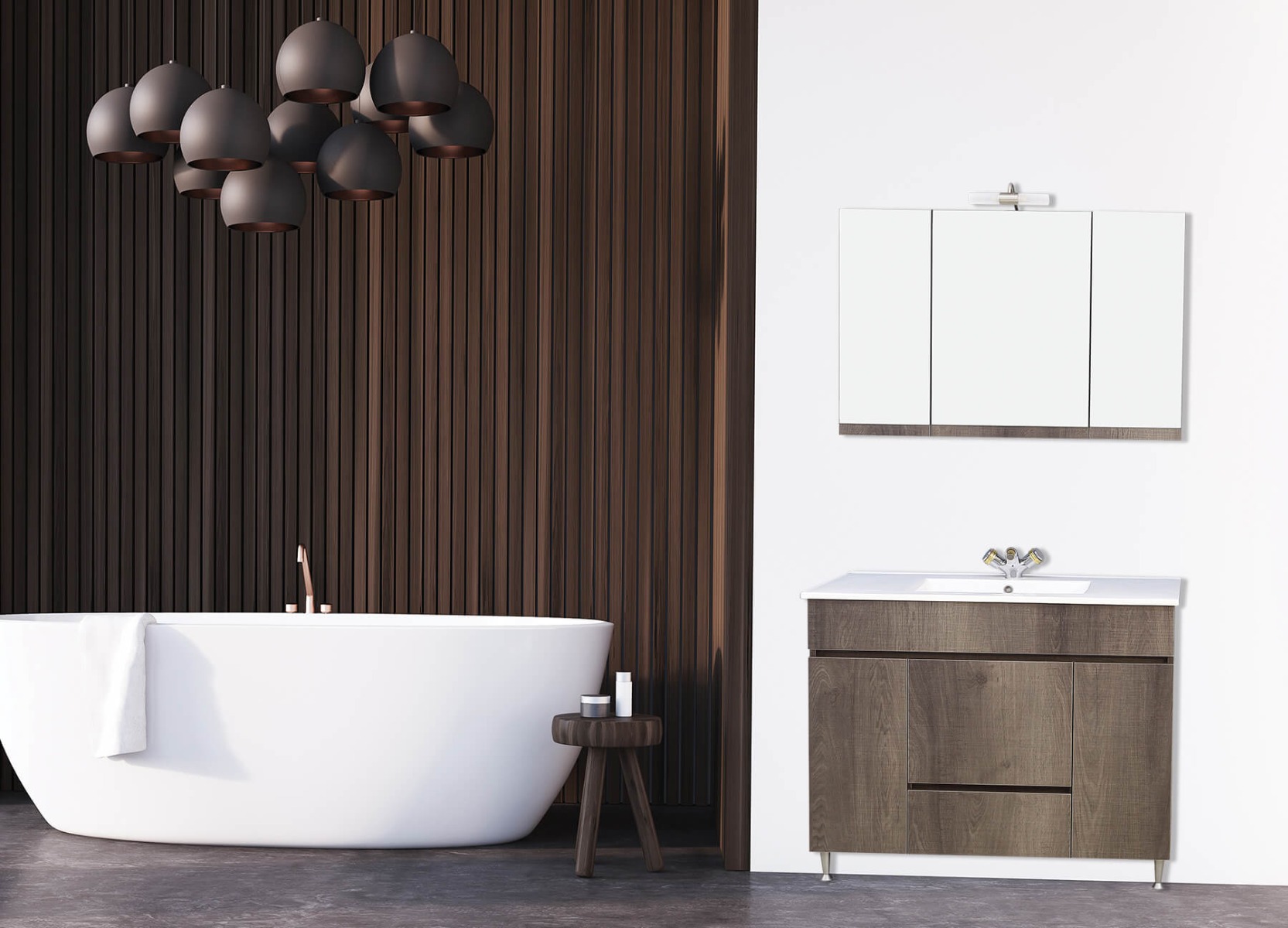 Βάση επίπλου μπάνιου επιδαπέδια 100cm, της συλλογής ΣΕΛΒΑ, με τρία ντουλάπια σε γκρι απόχρωση και εφέ τσιμέντου (κωδ.521).